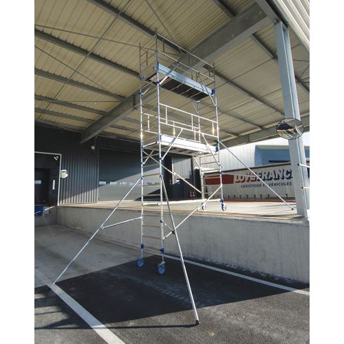 Pojazdné hliníkové lešenie Totem 2 Line Tubesca-Comabi, dĺžka podlahy 2,43 m, pracovná výška 4,85 m