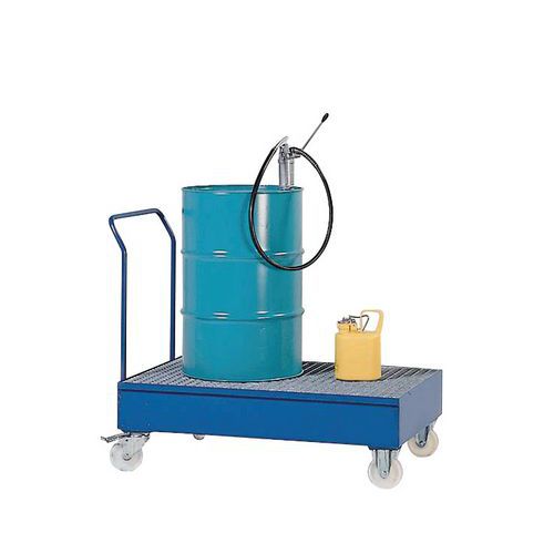 na bezpečnú vnútropodnikovú prepravu nebezpečných látok spĺňajú požiadavky zákona o vodnom hospodárstve prípustné na skladovanie horľavých kvapalín záchytný objem 60 a 200 l kapacita 1 sud 60l - 2 sudy 200l, pri variante na dva sudy je možné skladovať aj ležiace sudy (napr. v kombinácii so sudovou podperou) ľahko ovládateľné pomocou držadla vyberateľný žiarovo pozinkovaný mrežový rošt 2 pevné a 2 otočné kolesá všetky vane majú TUV certifikát Bezpečnostné pokyny:Nábytok postavte na rovný a plochý povrch. Pripevnite ho k stene alebo k priečke pomocou vhodného upevnenia. Dbajte na správne rozmiestnenie záťaže a neprekračujte maximálne povolené zaťaženie.