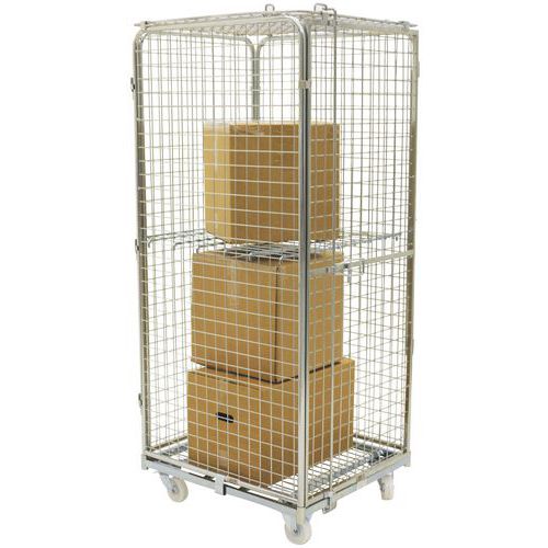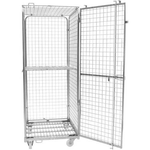 - Pojazdný etážový vozík so štyrmi mrežovanými bočnicami.