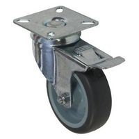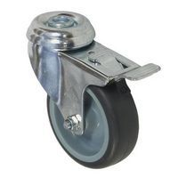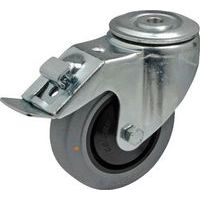 Gumové prístrojové kolesá so stredovým otvorom, priemer 75 - 100 mm, otočné s brzdou, klzné ložiská