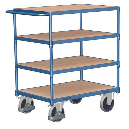 - Policové vozíky so štyrmi policami vhodné do skladov na prepravu tovaru a materiálu.