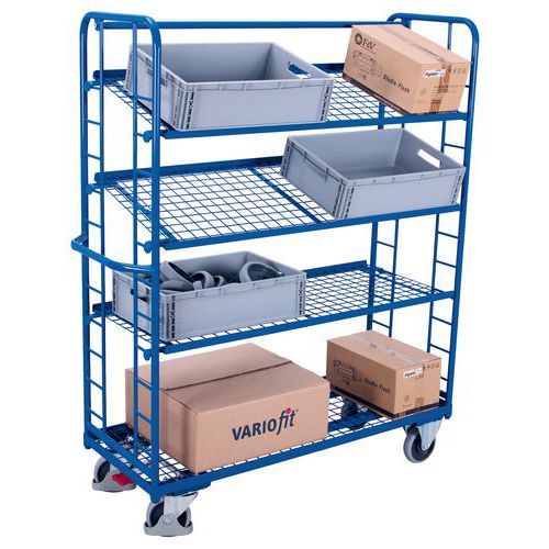 Policové vozíky so šikmými mrežovými policami, 4 police
