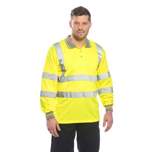 Polokošeľa s dlhým rukávom reflexnými prvkami a kontrastnými úpletovými manžetami. Ideálna do teplejšieho prostredia. Priedušný odev CE certifikované Reflexná páska UPF 50+ 4XL Kontrastný golier s fluorescenčným pruhom Veľkorysý na nosenie Drážkované manžety Vyhovuje RIS 3279-TOM pre železničný priemysel Texpel Wick sušiaci efekt Certifikované po 50 pracích cykloch Bio pohybová páska