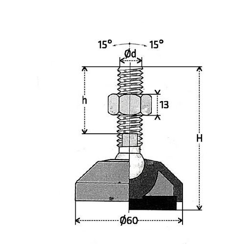 | Názov produktu | Polyamidová nastaviteľná noha, priemer závitovej tyče M16, materiál tyče oceľ, dĺžka tyče 61 mm |