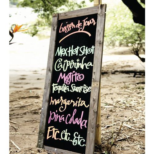 - Kriedový popisovač na všetky neporézne materiály ako sú okná, zrkadlá a tmavé tabule.