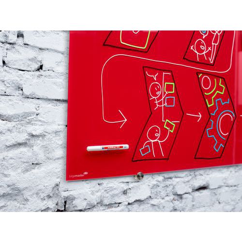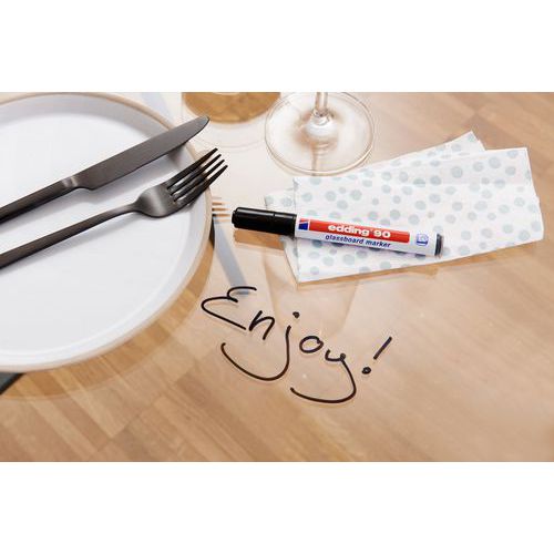 Popisovače vhodné na sklo, sklenené tabule a zrkadlá kombinujú výhody tabuľových a kriedových popisovačov. Vďaka krycej schopnosti atramentu zaistia, že je stopa na skle dobre viditeľná. Zmazateľnosť stopy nasucho, nie je teda nutné používať vlhčenú handru. Atrament je rýchloschnúci a nezanecháva žiadny mastný film. Ideálny na odkazy na zrkadle alebo na výzdobu na oknách. Popisovač je vybavený ventilovým systémom a preto je pred prvým použitím potrebné popisovač pretrepať a ľahkým pumpovaním umožniť atramentu stiecť do hrotu.