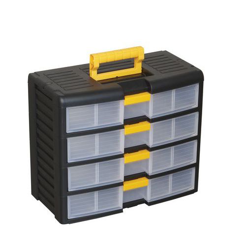 - Poschodový organizér z umelej hmoty na uskladnenie náradia a ďalších dielenských potrieb.