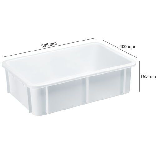 - Obdĺžniková plastová prepravka na potraviny spĺňajúca rozmery európskej normy.