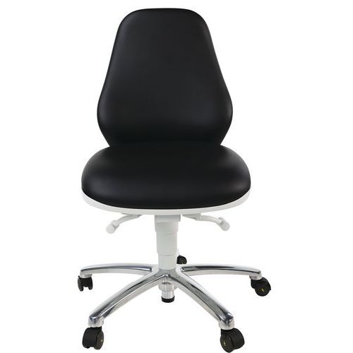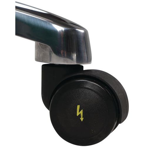Vhodná na tvrdé podlahy vďaka hladkým dvojitým kolieskam s brzdou. Obzvlášť vhodné pre farmaceutický, mikroelektronický a kozmický priemysel. Zabezpečené proti elektrostatickému výboju.