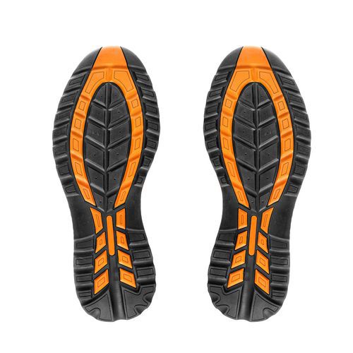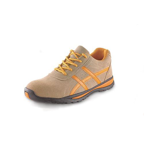 Pracovné poltopánky v béžovo-oranžovom vyhotovení z kombinovaného materiálu s kompozitovou špicou a kevlarovou stielkou. Topánky sú olejovzdorné, antistatické, protišmykové a odolné proti kontaktnému teplu do 300 °C. Vrch z brúsenej usne, 3D textilná podšívka a gumová podrážka. Spĺňajú normu EN ISO 20345:2011 S1P HRO SRA. EN ISO 20345: Táto medzinárodná norma stanovuje základné a dodatočné (nepovinné) požiadavky na bezpečnostnú obuv na používanie na bežné účely. Zahŕňa mechanické riziká, odolnosť proti pošmyknutiu, tepelné riziká a ergonomické správanie.