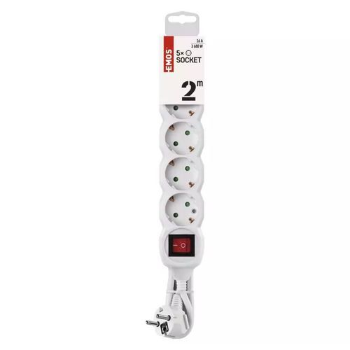 | Názov produktu | Predlžovací kábel Emos s vypínačom, SCHUKO, biely, PVC, 5 zásuviek, 2 m |