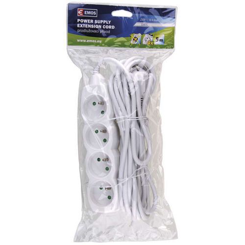 Predlžovací kábel Emos, 4 zásuvky, biely, 5 m
