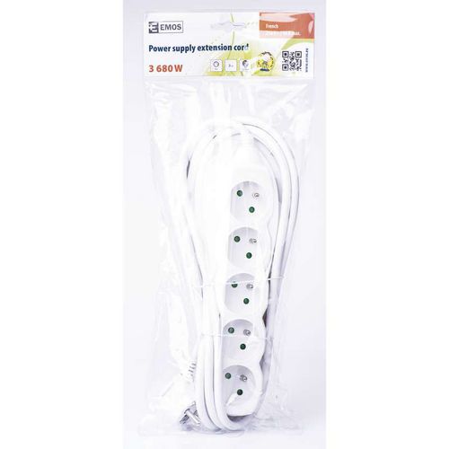Predlžovacie káble Emos, 5 zásuviek, biele