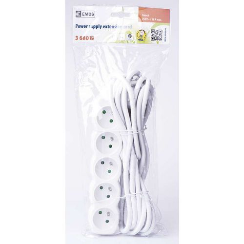 Predlžovací kábel Emos, 5 zásuviek, biely, 5 m