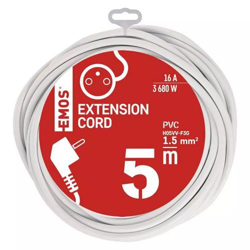 Predlžovací kábel Emos, biely, PVC, 1 zásuvka, 5 m