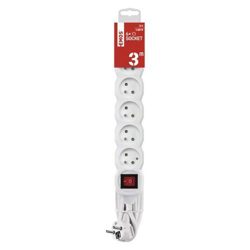 Predlžovacie káble Emos s vypínačom, biele, PVC, 6 zásuviek