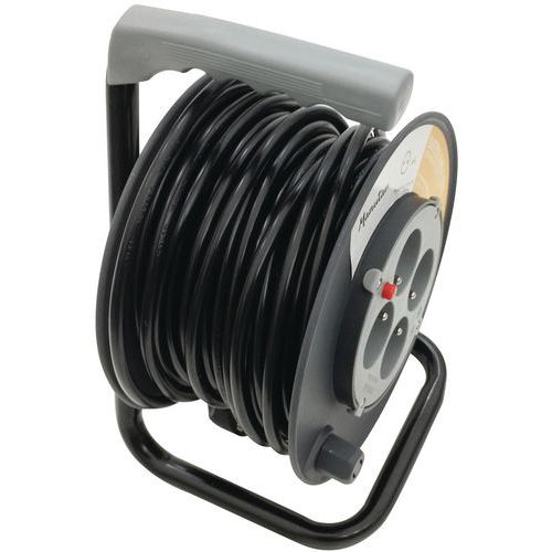 - Káblové navijaky vybavené 4 zásuvkami. Jednoduchá manipulácia vďaka ergonomickému držiaku.