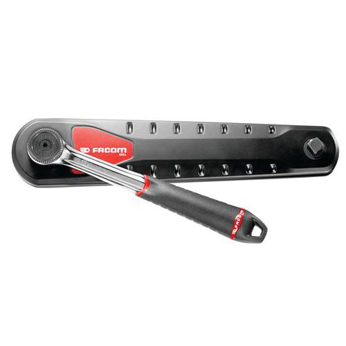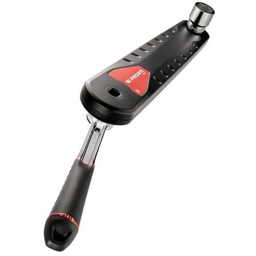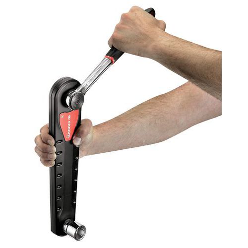 Predĺženie pre prepínacie račne. Navrhnuté tak, aby sa pohybovalo smerom od osi uťahovania. Užívateľ má viac priestoru na vykonanie zásahu. Ušetríte tým veľa času, pretože už nie je nutné uvoľňovať priestor na prístup k skrutke/matici. Asymetrická konštrukcia pre väčší výkon pohonu na jednej strane. Možno použiť pre ručné, pneumatické alebo elektricky poháňané račne.
