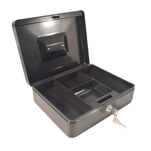 - Uzamykateľné prenosné pokladničky v niekoľkých farebných vyhotoveniach s kovovou rukoväťou.