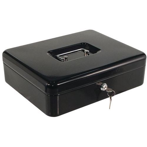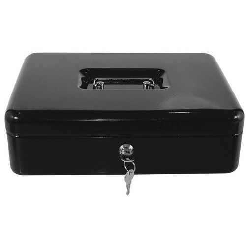 - Uzamykateľné oceľové pokladne v niekoľkých farebných vyhotoveniach s kovovou rukoväťou.