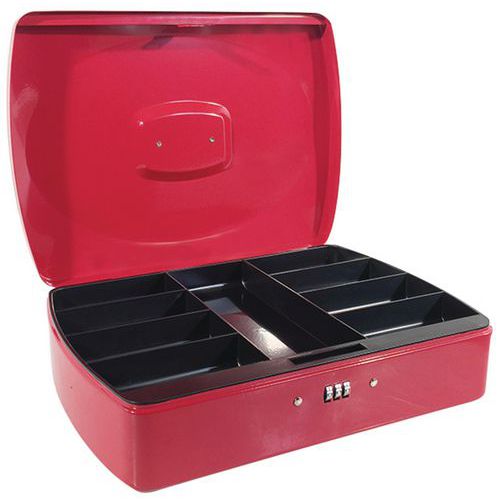 Prenosná pokladnica s kódovým zámkom Manutan Expert, 9 priehradiek, červená