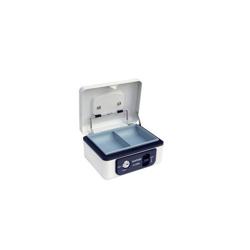 - Oceľová pokladnička s páčkou na pohodlné otvorenie veka a blokáciou proti jeho samovoľnému zatvoreniu.
