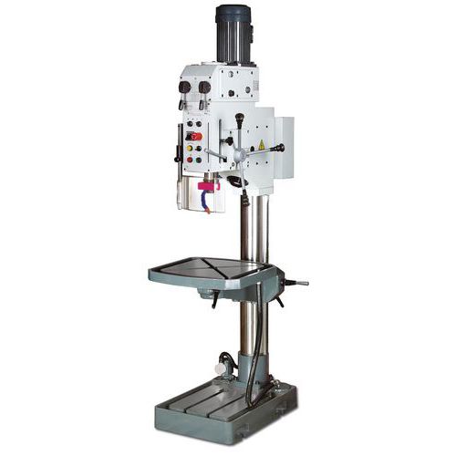 - Profesionálne stĺpové vŕtačky s prevodovým súkolesím, strojovým posuvom, závitovacím cyklom a chladením