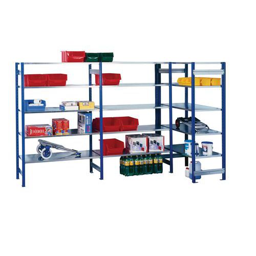 - Kovové police z pozinkovaného plechu sa dodávajú v balení po dvoch kusoch a možno ich ľahko namontovať ku kovovým stavebnicovým regálom.
