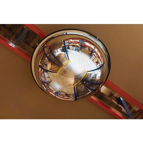 Priemyselné parabolické zrkadlá slúžia na zvýšenie bezpečnosti a prehľadnosti na križovatkách v skladoch, priemyselných halách a pod. Kontrola a odstrašenie zlodejov v predajniach. Súčasťou balenia je montážny materiál. Zrkadlá je možné upevniť k stropu pomocou háčikov a reťazí (nie sú súčasťou balenia). priemer gule: 600 – 1 200 mm tvar: polguľa materiál: akryl spôsob prichytenia: spojovacím materiálom pozorovacia vzdialenosť: 12 – 25 m pozorovací uhol: 360° použiteľné v prostredí: interiér hmotnosť: 0,8 – 2,5 kg dodáva sa vrátane montážneho materiálu
