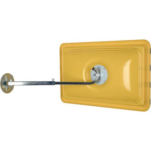 Priemyselné dohľadové zrkadlo so žlto-čiernymi označovacími prúžkami, ktoré upútavajú pozornosť v nebezpečných oblastiach. Vynikajúca spätná väzba obrazu bez skreslenia vďaka pokovovaniu zadnej strany. Umožňuje sledovať vzdialené pracovné oblasti a mŕtve uhly a predchádzať tak pracovným a výrobným úrazom Vyrobené z akrylu, ktorý je o 70 % odolnejší proti nárazu ako sklo.