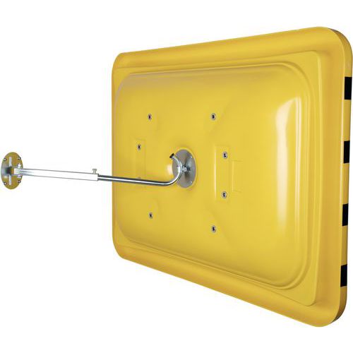 Priemyselné dohľadové zrkadlo so žlto-čiernymi označovacími prúžkami, ktoré upútavajú pozornosť v nebezpečných oblastiach. Vynikajúca spätná väzba obrazu bez skreslenia vďaka pokovovaniu zadnej strany. Umožňuje sledovať vzdialené pracovné oblasti a mŕtve uhly a predchádzať tak pracovným a výrobným úrazom Vyrobené z akrylu, ktorý je o 70 % odolnejší proti nárazu ako sklo.