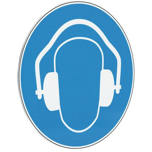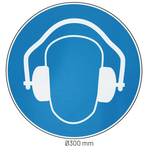 - Príkazové značenie s piktogramom - Povinnosť nosiť ochranu sluchu.