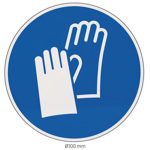 - Príkazové okrúhle značenie pre určenie povinnosti nosiť ochranné rukavice pre zaistenie optimálnej bezpečnosti.