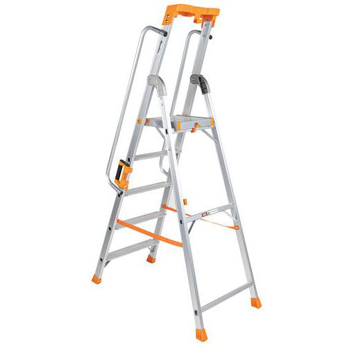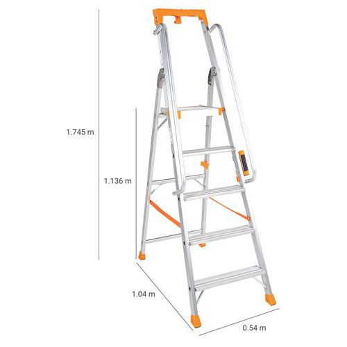 Profesionálny hliníkový rebrík s plošinou Manutan Expert, 5 stupňov