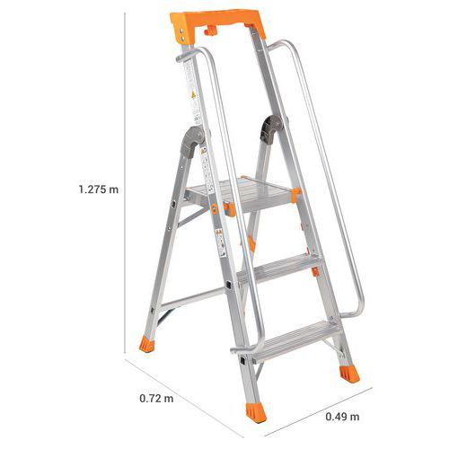 Profesionálne hliníkové schodíky s madlami Manutan Expert, 3 stupne