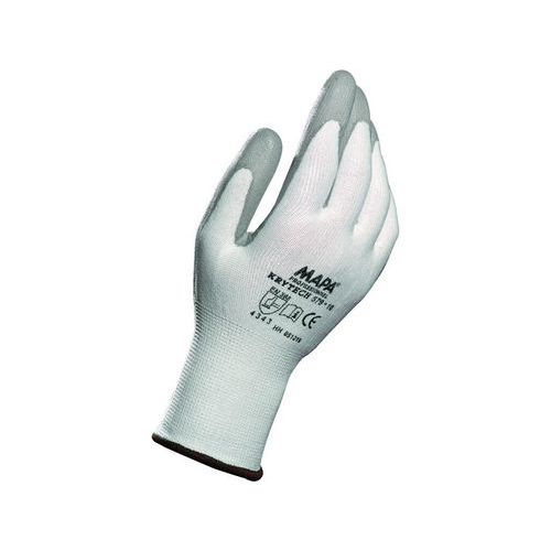 Polyuretánom potiahnuté dlane a prsty. Odolnosť proti prerezaniu 3. Dĺžka rukavíc: 22 - 27 cm. Odporúčané použitie: montáž tenkých plechov, manipulácia s hrubými dielmi alebo plechmi, manipulácia s kartónom a papierom. Z Veľkosti: 7, 8, 9, 10 Piktogramy: 1 / 4343, 9, 10 Predpisy: EN 388, EN 420 Zloženie materiálu: bezšvový úplet z HDPE vlákien Dĺžka: 22-27 cm