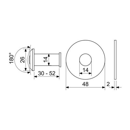 | Názov produktu | Protipožiarne dverové kukátko so sklenenou šošovkou vr. 2 ks podložiek |