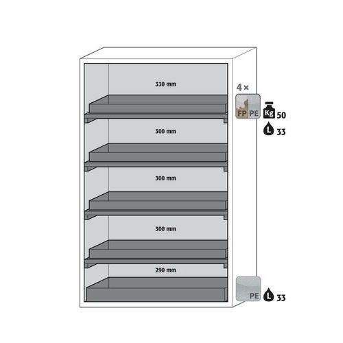 Protipožiarna skriňa na horľaviny Asecos, 1 968 x 1 196 x 616 mm, PP, 4 záchytné police, vaňa, 33 l, žltá Protipožiarna skriňa na horľaviny Asecos, 1 968 x 1 196 x 616 mm, PP, 4 záchytné police, vaňa, 33 l, žltá
