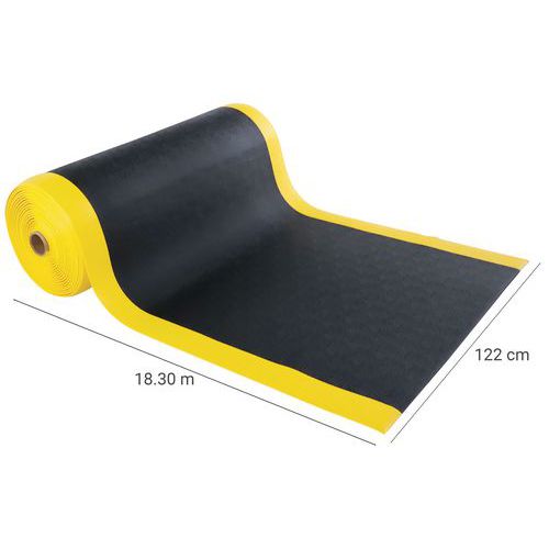 Protiúnavová priemyselná rohož Manutan Expert s granulovaným povrchom, 1 830 x 122 cm, čierna/žltá