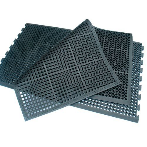 - Rohože proti únave sa používajú k obrábacím centrám, sústruhom, frézam do autoservisov a pod. Jednotlivé rohože sa dajú skladať za seba pomocou stredných a bočných dielov, ktoré zakončujú rohož. Materiál s vyšším obsahom nitrilu. Otvory spolu s drenážou odvádzajú tekutiny z povrchu. Vyššia hmotnosť rohoží zaručuje ich dobrú stabilitu. Nábehové hrany bránia zakopnutiu a umožňujú nájazd vozíkov.