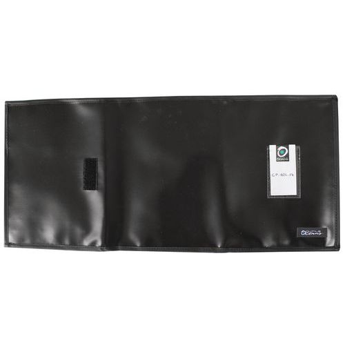 Puzdro na doklady a kľúče od vozidla. 1 priehradka na doklady k vozidlu (technický preukaz a doklady o poistení). 1 priehradka na karty (benzín, údržba vozidla atď.). 1 delený krúžok na kľúč. 1 držiak štítkov na prednej strane (meno, registračná značka vozidla atď.). Zapínanie na suchý zips a lemovanie.