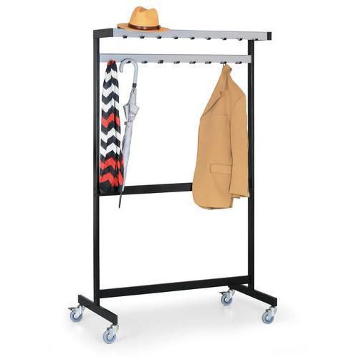- Radový stojanový vešiak s odkladacou policou v jednostrannom vyhotovení s kolieskami.