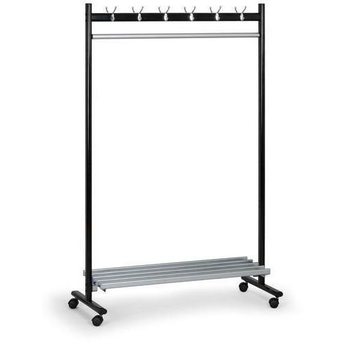 - Kovový stojanový vešiak v obojstrannom vyhotovení s kolieskami.