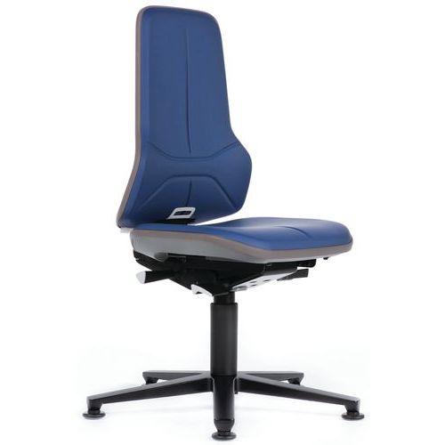 ESD rám dielenskej stoličky Bimos 9570E s operadlom pre Bimos Neon, synchrónny mechanizmus, klzáky, šedá/modrá