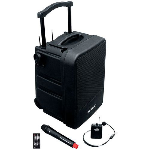 - dodávaný s ručným bezdrôtovým mikrofónom, vysielačom na opasok a náhlavným mikrofónom UHF, PLL