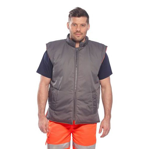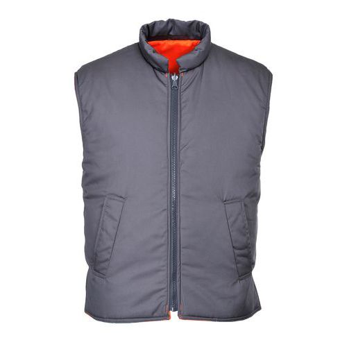 Zateplená obojstranná flexibilná vesta výbornej kvality. Veľké vrecká.Oranžová alebo sivá. CE certifikované Reflexná páska Obojstranný odev UPF 50+ Hlboké vrecká 4 vrecká Plne zateplené a polstrované Vyhovuje RIS 3279-TOM pre železničný priemysel Polyester / Bavlnená Texpel tkanina TEXPEL SOS