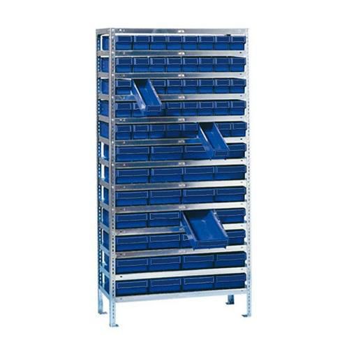 - Kovový regál s trinástimi policami a vysúvacími boxami určený na prehľadné uskladňovanie drobného materiálu pre dielne, sklady, autoserivsy, obchody a pod. Možnosť dokúpiť deliace priečky pre boxy. Povrchová úprava pozinkovaním.