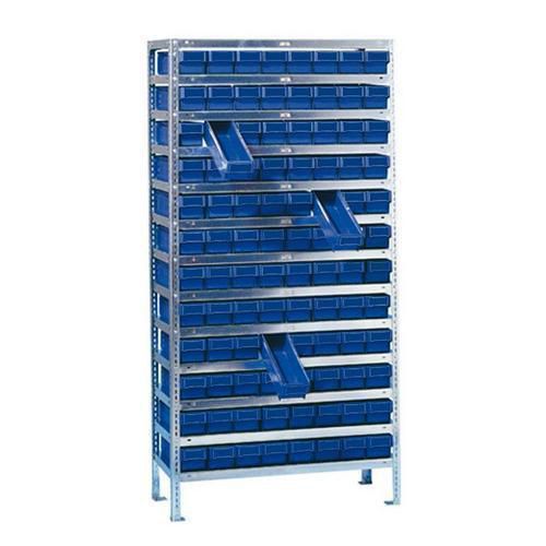 - Kovový regál s trinástimi policami a vysúvacími boxami určený na prehľadné uskladňovanie drobného materiálu pre dielne, sklady, autoserivsy, obchody a pod. Možnosť dokúpiť deliace priečky pre boxy. Povrchová úprava pozinkovaním.