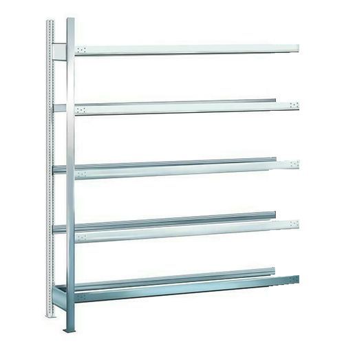 prestaviteľnosť priečok v rastri 25 mm, jednoduchá montáž, celková šírka prístavbového regála: + 6 mm