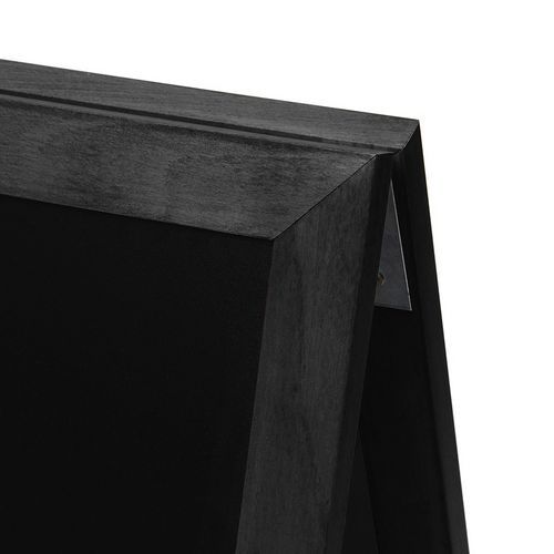 Reklamné áčka s kriedovou tabuľou z kvalitného tvrdého bukového dreva a čiernej laminovanej drevotriesky. Vďaka ochrannému laku a náteru stabilnými UV farbami sú vhodné aj na vonkajšie použitie. Jednoduchú manipuláciu umožňujú pánty z galvanizovanej ocele. Vhodné na použitie do reštaurácií či bistier. Vyrobené v EÚ